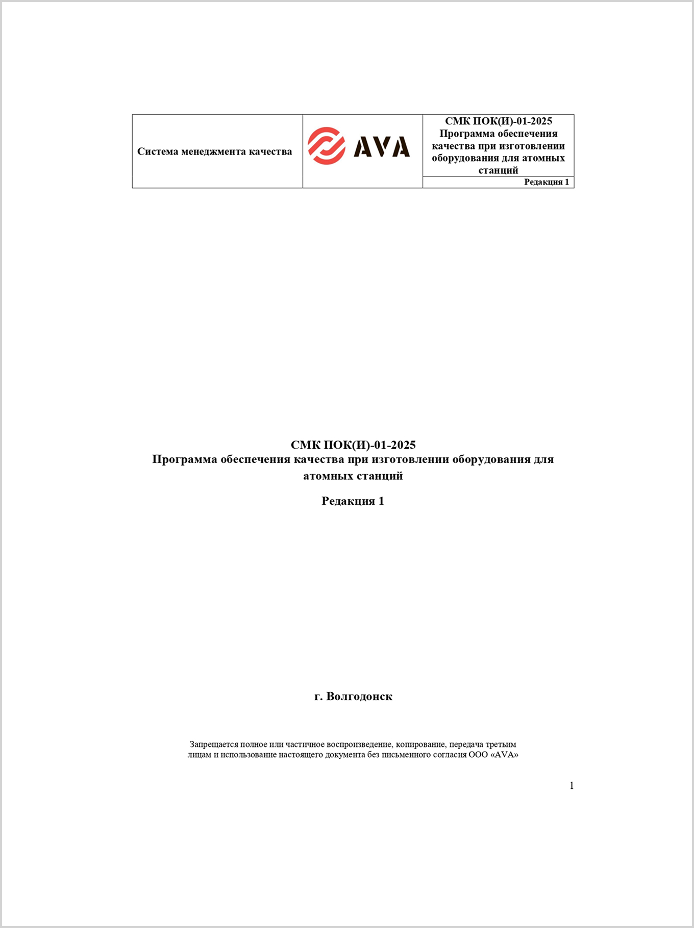 СМК ПОК(И)-01–2025 Программа обеспечения качества при изготовлении оборудования для атомных станций